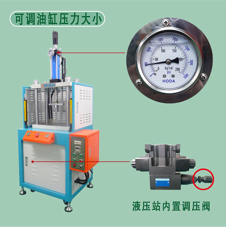 7、非标设计定制:多工位转盘装置、顶缸顶出装置、接料装置、侧缸滑出伸缩装置等智能设备,可加装冷却系统、保压功能、压力继电器、测力显示器、PLC人机界面等;